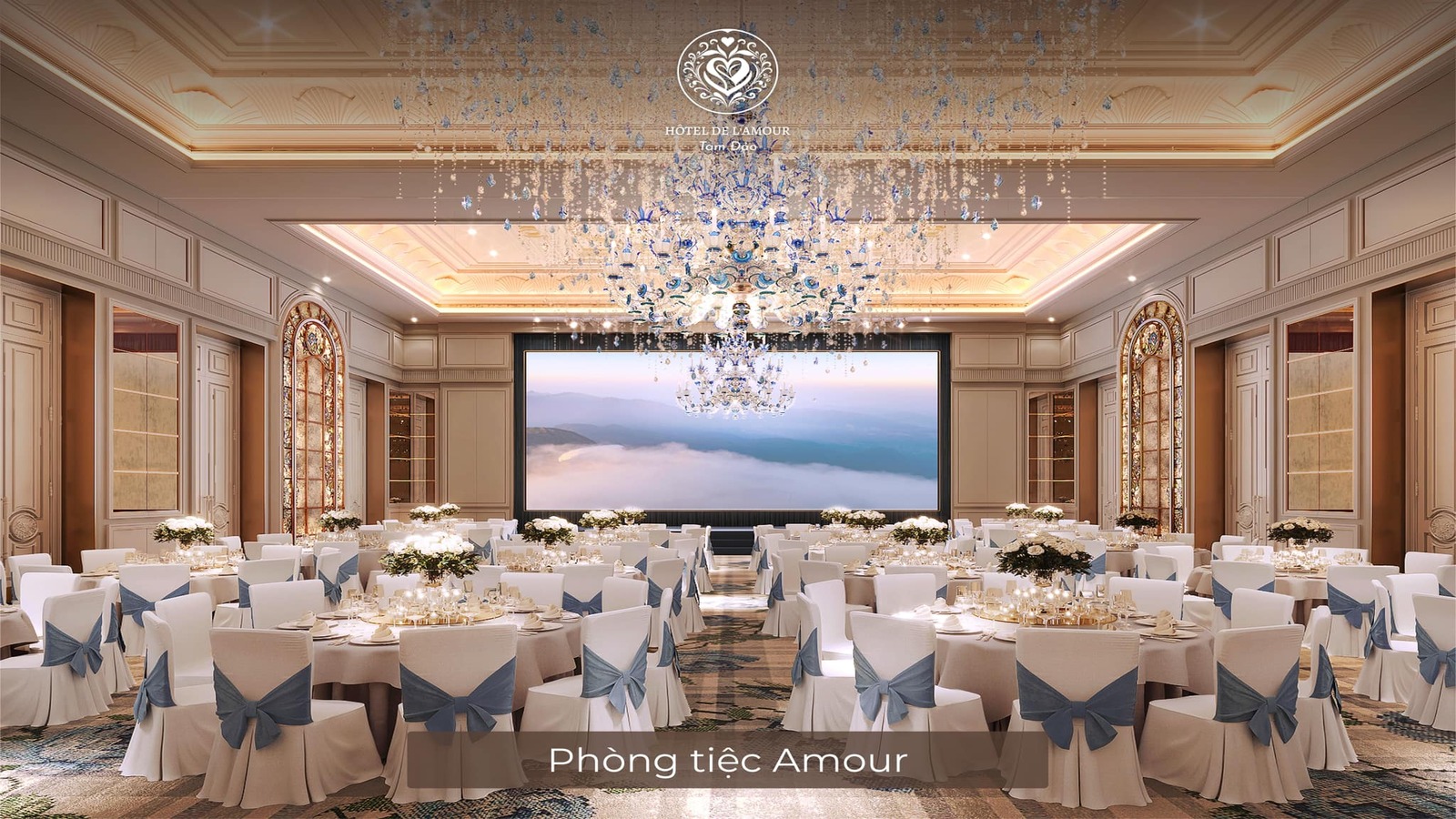 Lấy cảm hứng từ những bữa tiệc xa hoa và lộng lẫy trong những lâu đài nguy nga tráng lệ từ những câu chuyện cổ tích, Phòng tiệc Amour mang đến cho mọi vị khách của buổi tiệc cảm giác như được quay lại một thời kỳ quá khứ huy hoàng, bước chân vào thế giới phồn hoa của giới quý tộc nước Pháp cùng phong cách kiến trúc tân cổ điển đầy sang trọng và quý phái.