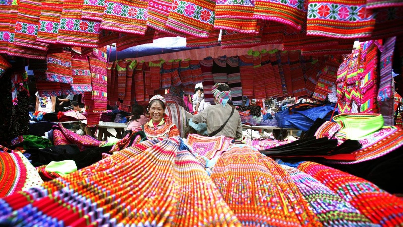 Ở phiên chợ Sapa, khách du lịch có thể bắt gặp nhiều loại thổ cẩm khác nhau về hình dạng và kích cỡ như khăn quàng cổ, ví, túi xách, quần áo, váy,.. Tất cả các sản phẩm đều được thuê bằng tay rất tỉ mỉ và cẩn thận, để hoàn thành những sản phẩm này, người dân địa phương phải mất từ vài tuần đến vài tháng. Những sản phẩm tượng trưng cho văn hóa độc đáo, truyền thống lâu đời và tượng trưng cho cả những con người nơi đây, chân chất, thật thà và luôn thân thiện. Màu sắc và kiểu dáng bắt mắt. Hiện nay đồ thổ cẩm thêu tay này được bày bán khá nhiều tại các khu chợ mặt đất. Vì tránh mua phải hàng giả, du khách cần chọn những của hàng uy tín để mua. Thổ cẩm thêu tay sẽ không đều và mượt như thêu bằng máy nhưng thổ cẩm thêu tay có mùi thơm, và hoa văn sống động khác nhau.