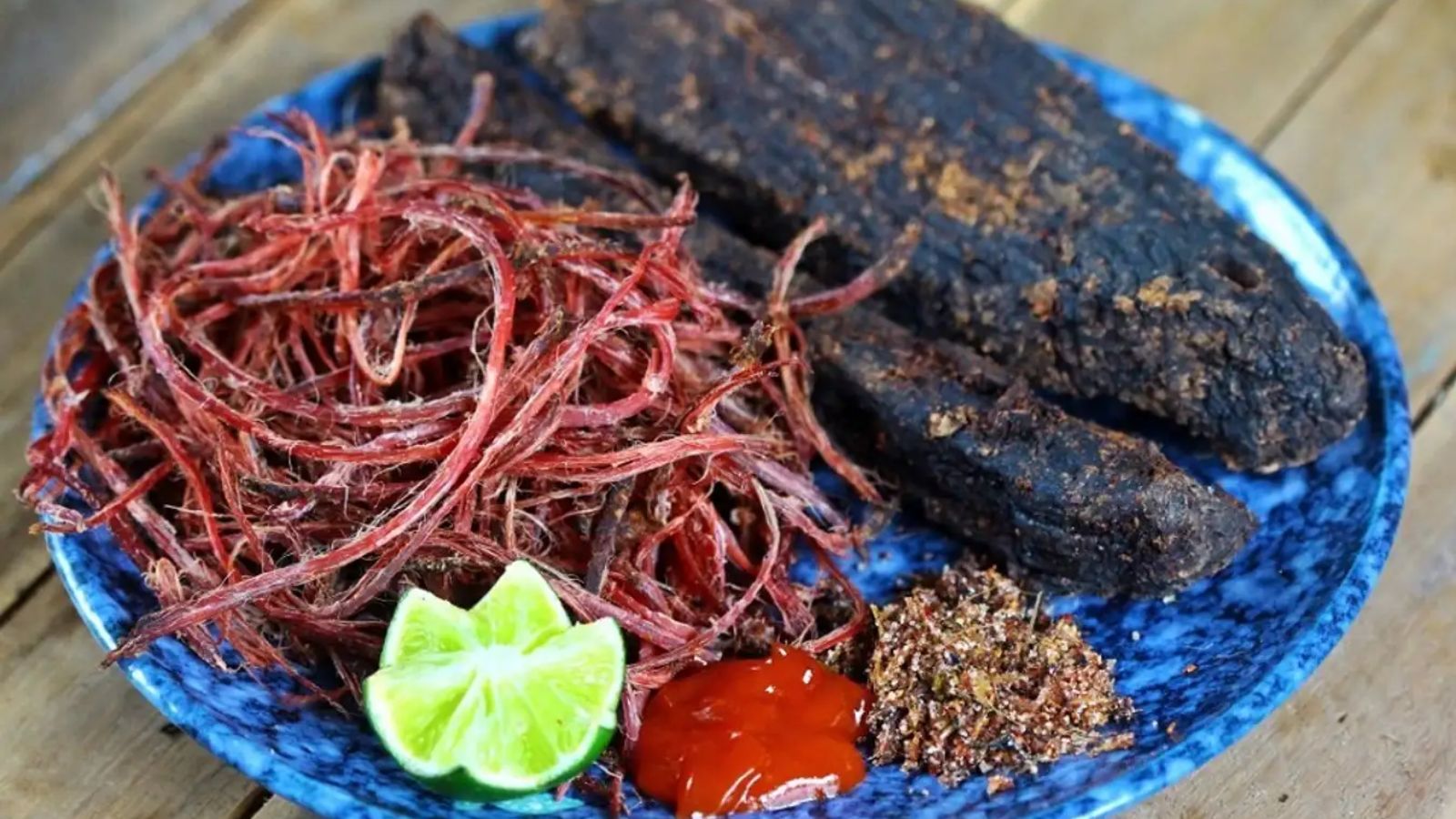 Khi xem những review ăn uống tại Sapa, bạn sẽ được giới thiệu về món thịt trâu gác bếp nổi tiếng. Đây là đặc sản được nhiều khách du lịch mua về để tặng cho bạn bè hoặc gia đình. Thịt trâu sau khi ướp gia vị sẽ được xiên thành que dài và mang đi xông khói ở bếp củi từ 8 đến 10 tháng cho đến khi có màu nâu đỏ sậm, độ khô vừa phải mà vẫn giữ hương thơm đậm đà.