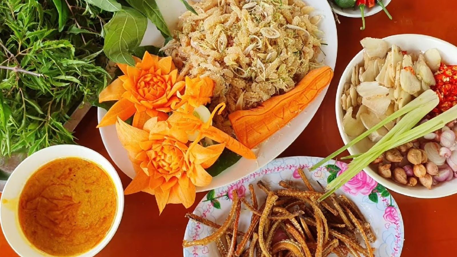 Về vùng Kim Sơn trong chuyến du lịch Ninh Bình, gỏi cá nhệch là một món ngon mà bạn đừng quên nếm thử. Với sự chế biến khá công phu và tinh tế để loại bỏ được mùi tanh của cá, kết hợp với nếp mới tạo ra một món ngon vô cùng ấn tượng.