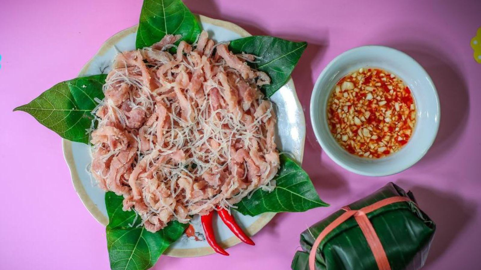 Được làm từ phần nạc của thịt mông heo thái mỏng kết hợp với bì heo luộc, mì chính và muối, sau đó được gói lại bằng lá ổi và lá chuối tăng thêm hương vị cho món ngon.