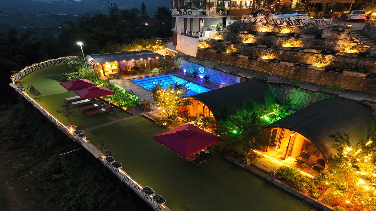 Khách sạn nằm trên đồi, cách trung tâm Sapa chỉ khoảng 1 km, mang lại cho du khách một tầm nhìn tuyệt đẹp ra những thửa ruộng bậc thang và núi non hùng vĩ. Điều này giúp bạn dễ dàng khám phá các điểm tham quan nổi tiếng như Nhà thờ Đá, Chợ Sapa và các bản làng xung quanh.