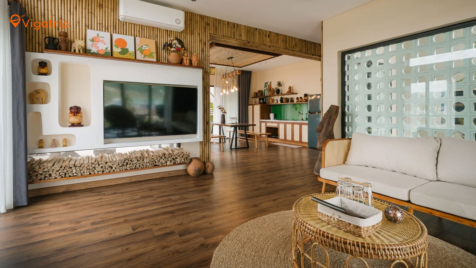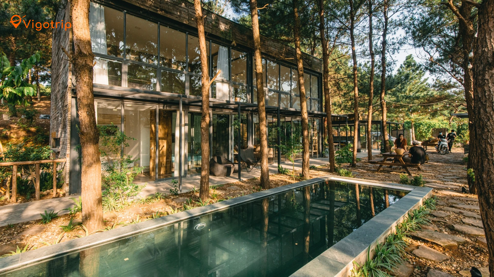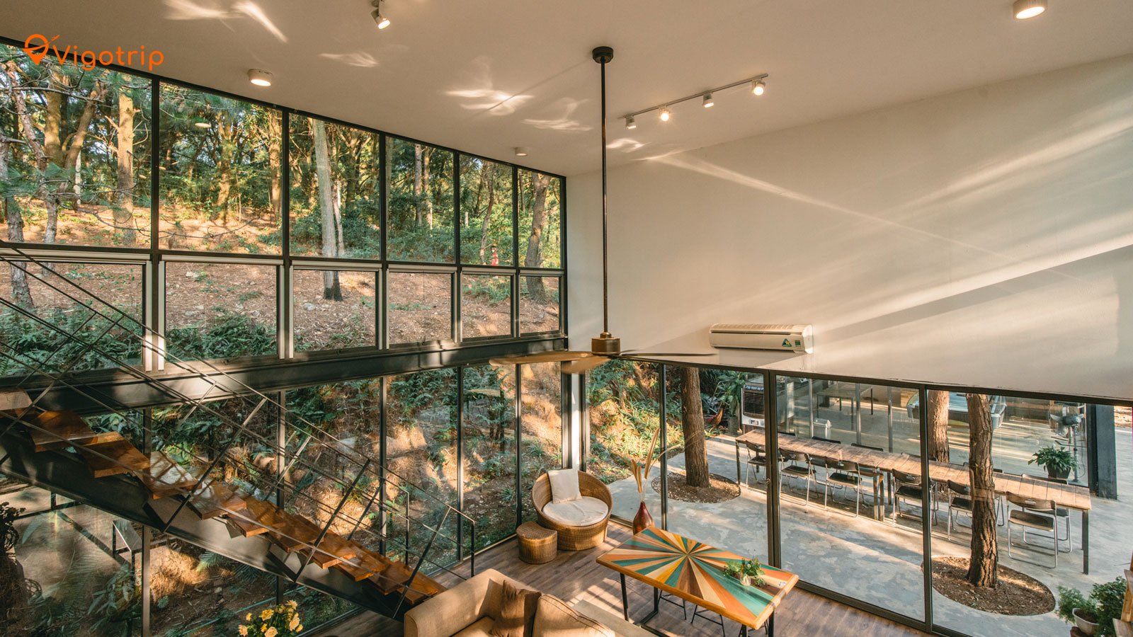 Thiết kế thân thiện với thiên nhiên: Villa được xây dựng với vật liệu tự nhiên, hòa mình vào cảnh quan xung quanh. Các phòng nghỉ đều có cửa sổ lớn hướng ra rừng cây, cho phép bạn tận hưởng vẻ đẹp của thiên nhiên ngay từ trong phòng.