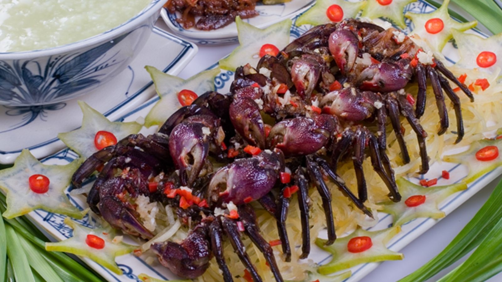 Đặc trưng: Ba khía (loại cua nhỏ sống ở rừng ngập mặn) được bắt về rửa sạch, muối với tỏi, ớt và gia vị. Thịt ba khía săn chắc, mằn mặn, thơm nồng.