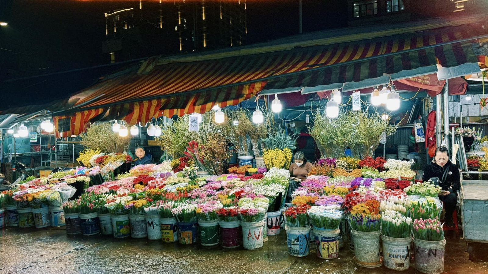 Nhắc đến chợ hoa đêm, không thể không kể đến chợ Quảng Bá. Đây là khu chợ đầu mối hoa lớn nhất Hà Nội, hoạt động chủ yếu vào ban đêm, từ 2h đến 5h sáng.