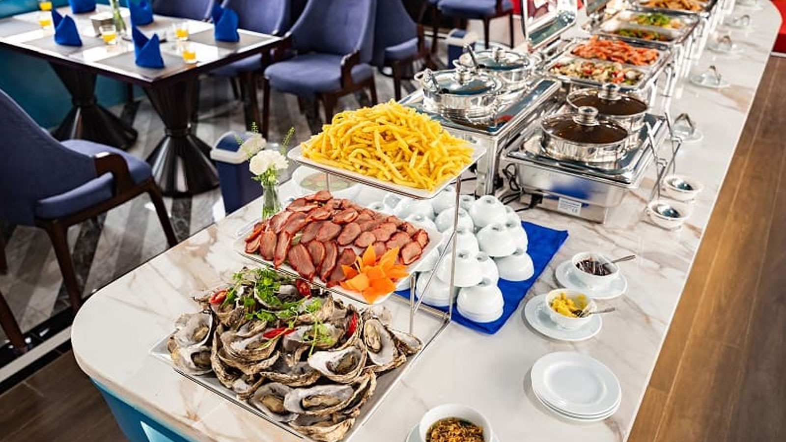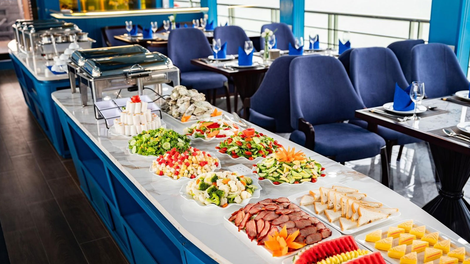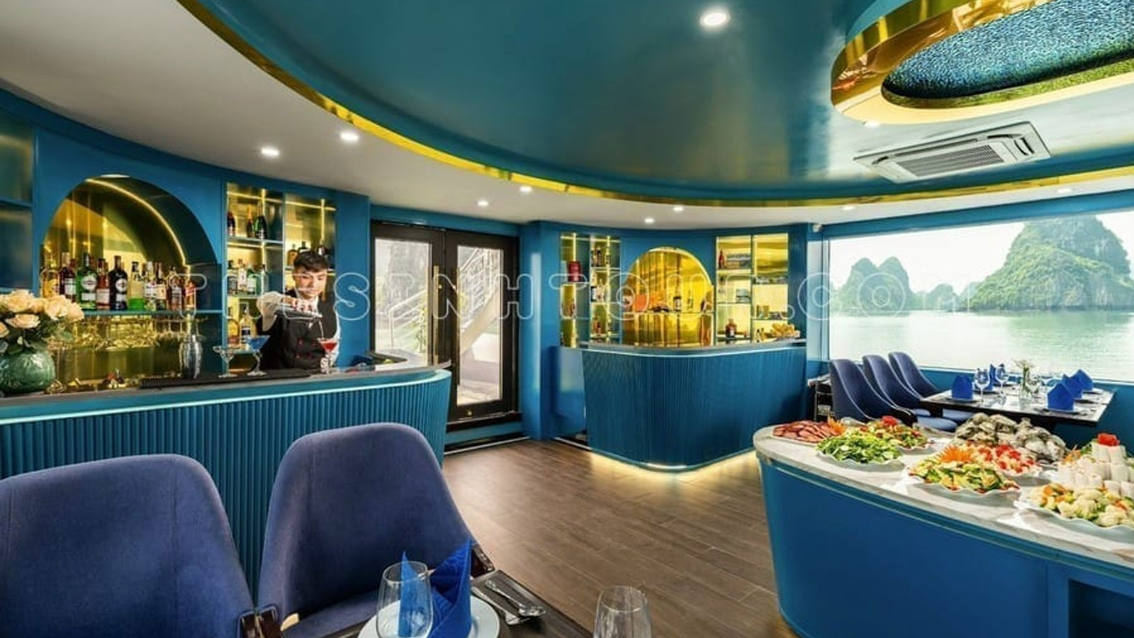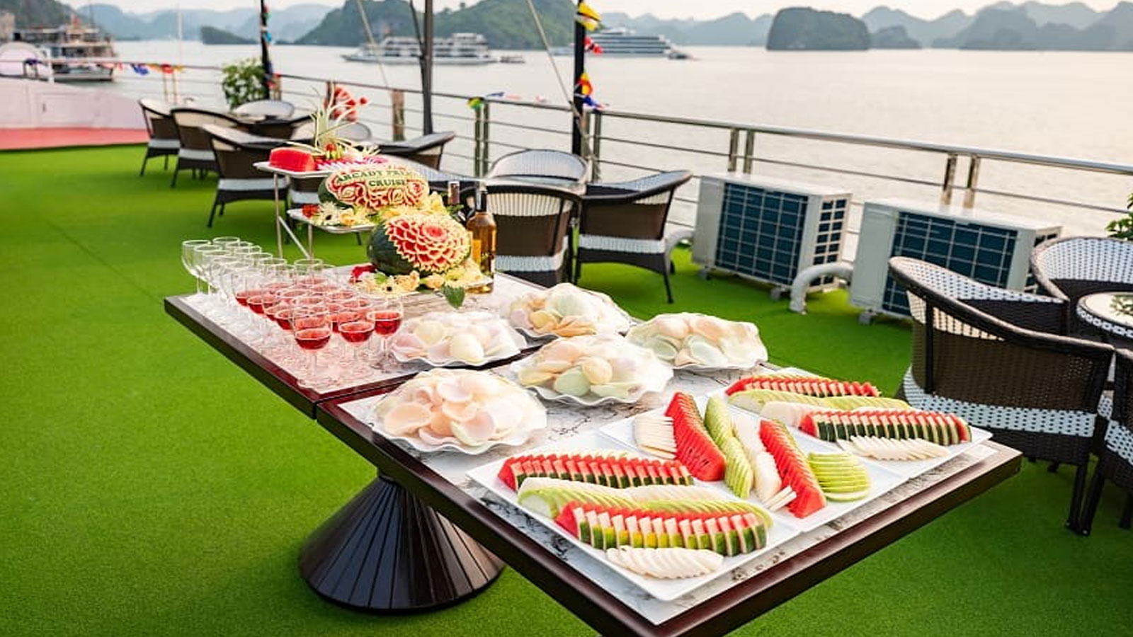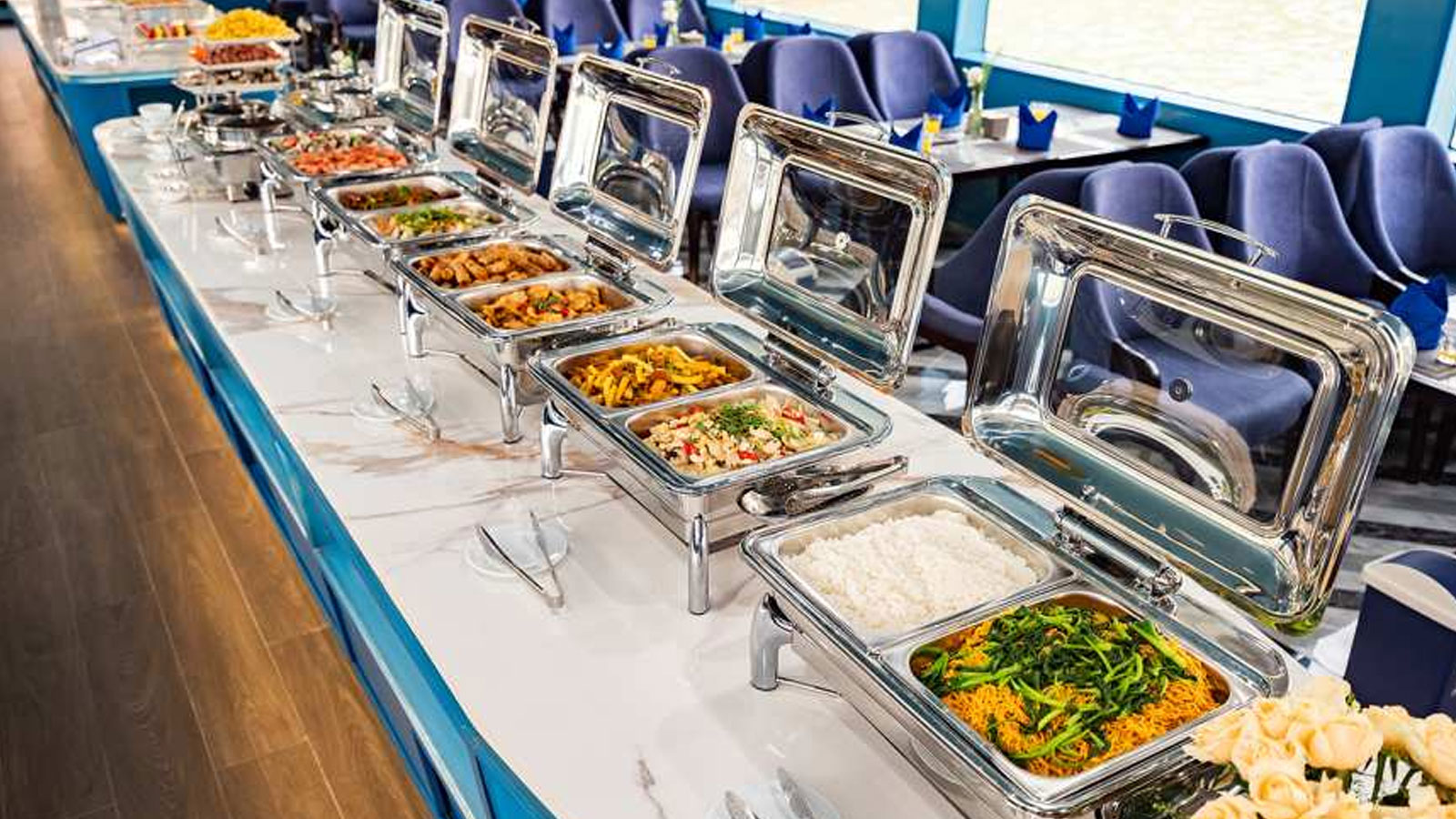 - Ăn trưa buffet trên tàu khi tàu di chuyển qua các đảo đá vôi.