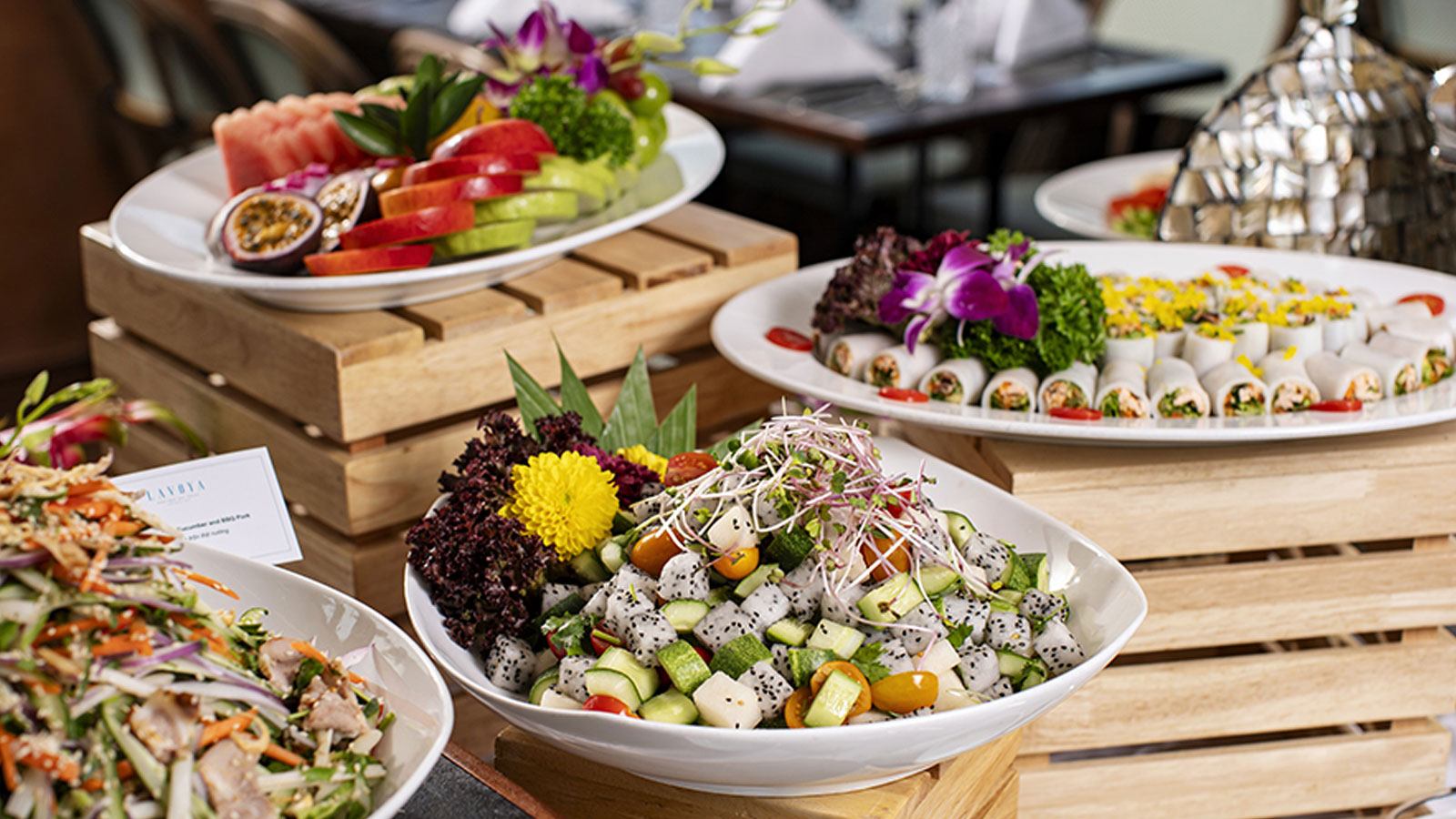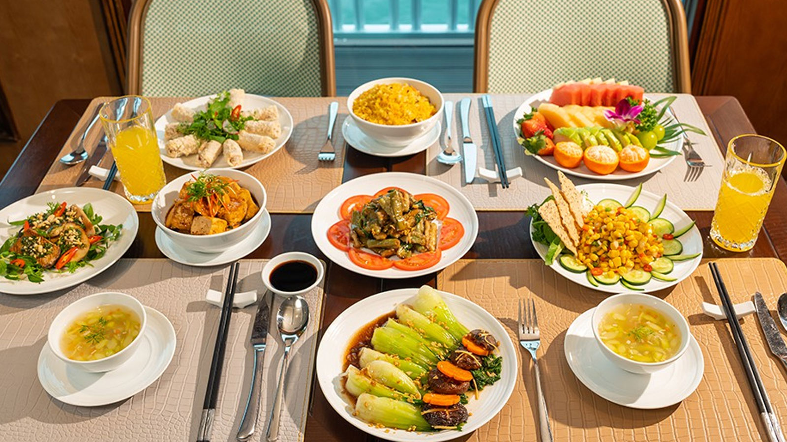 Buffet Á – Âu cao cấp với hơn 30 món (hải sản, steak, salad…).