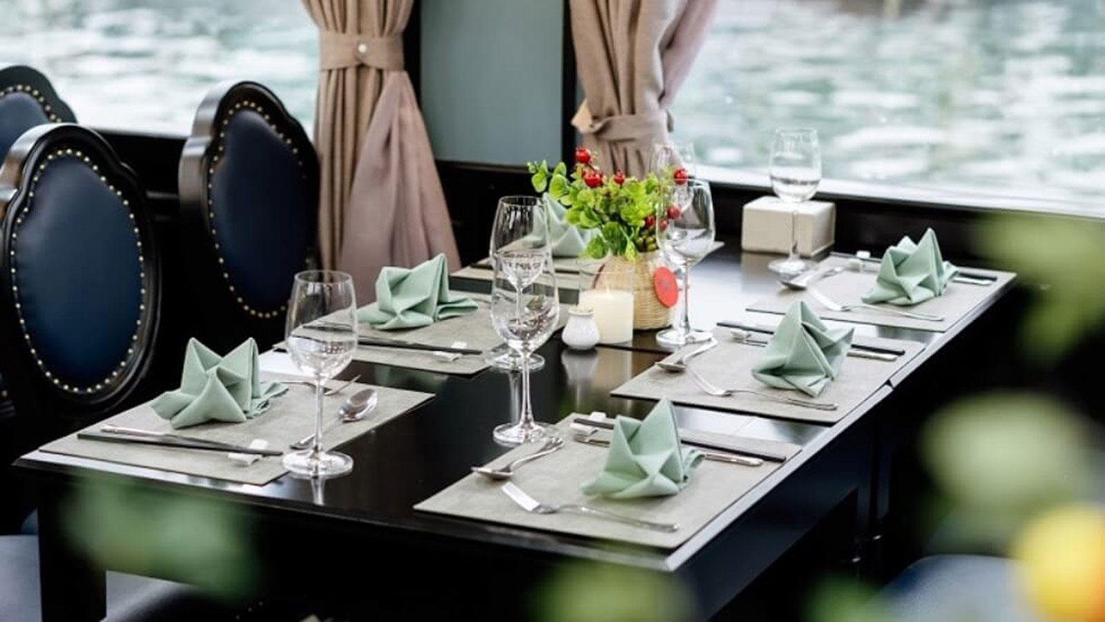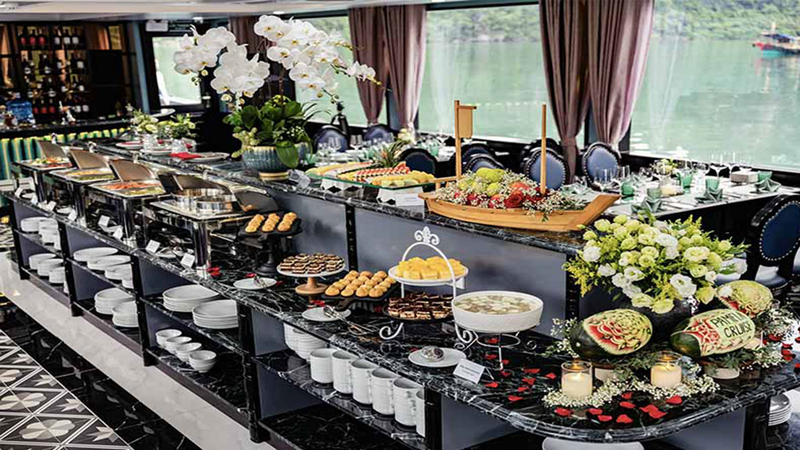 12:15–13:30: Ăn trưa buffet hải sản và món Việt trên tàu.