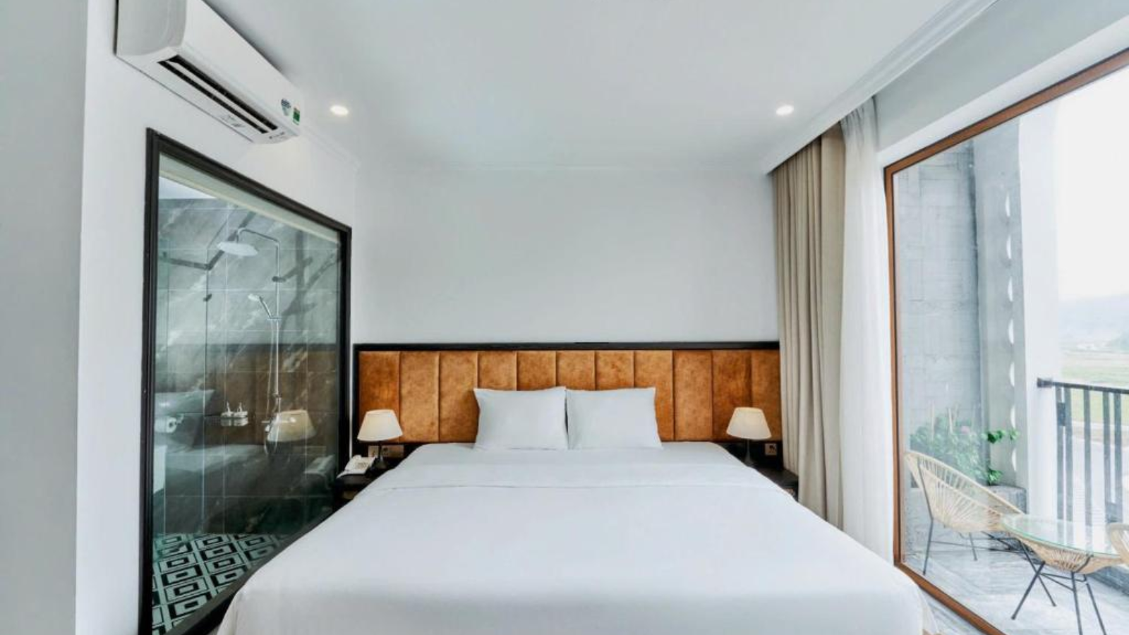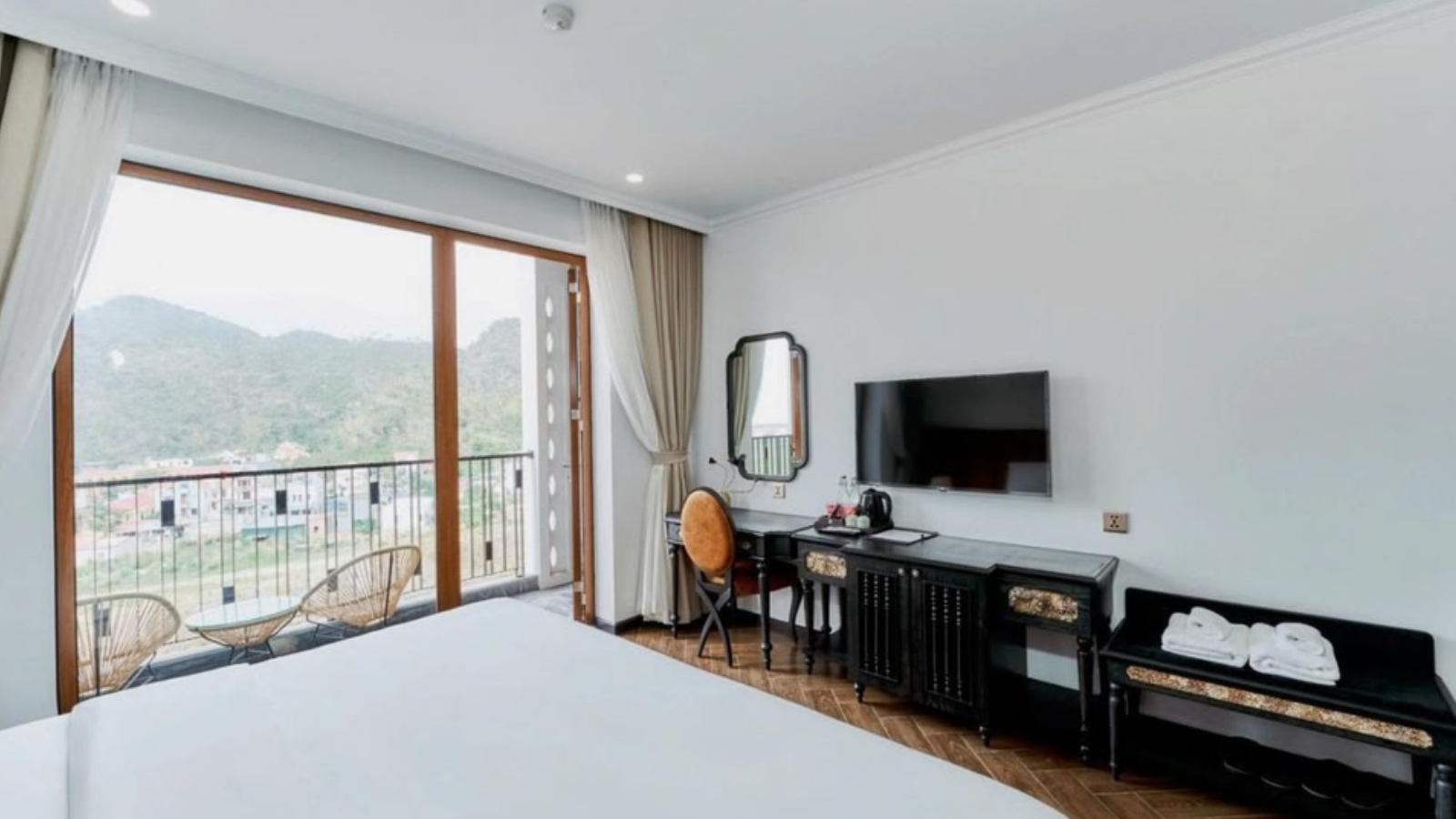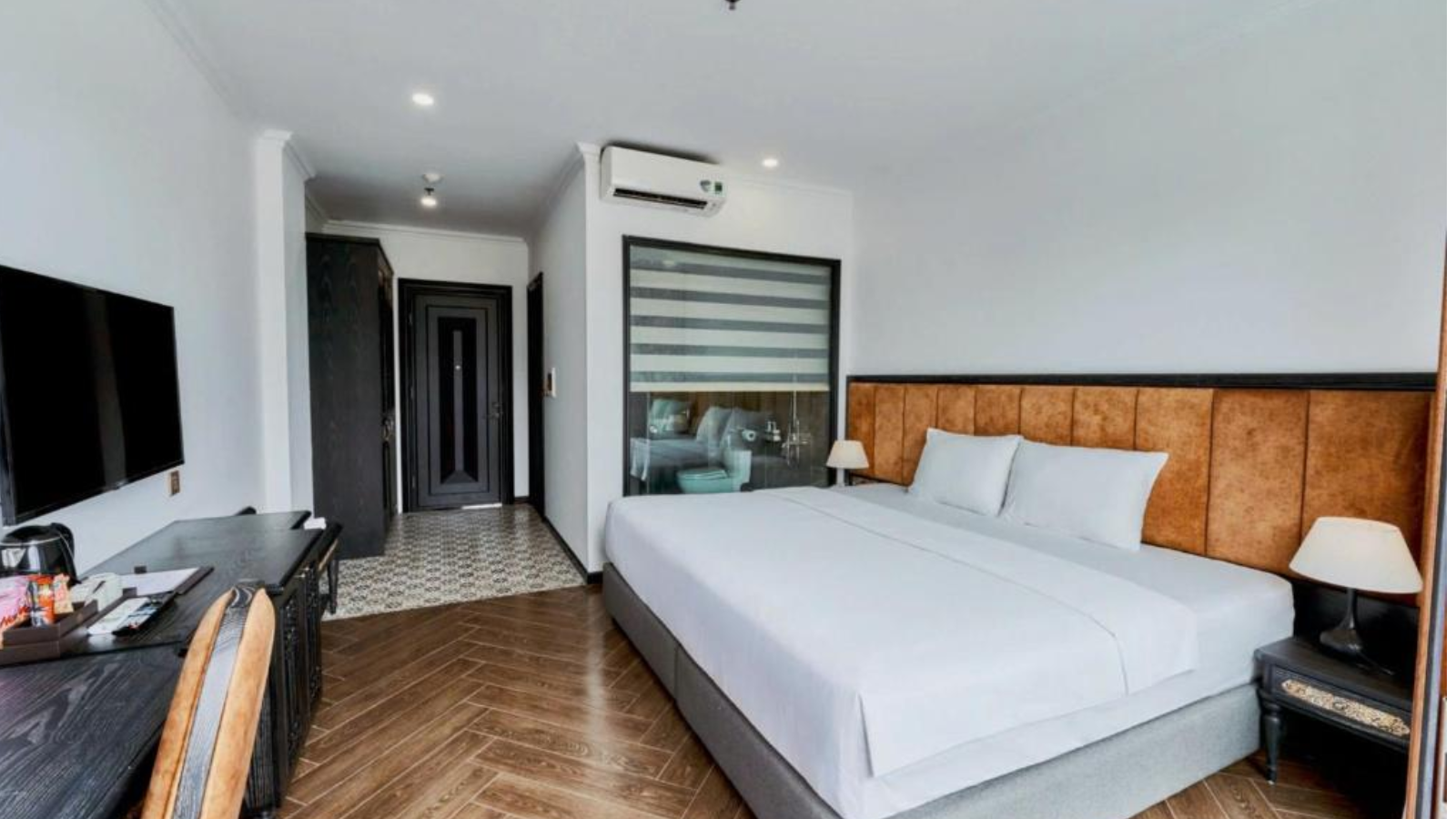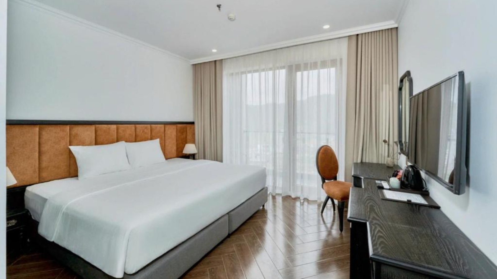 Phòng trang bị đầy đủ tiện nghi: máy lạnh, ban công, bàn làm việc, minibar, két an toàn, TV màn hình phẳng và phòng tắm riêng hiện đại.