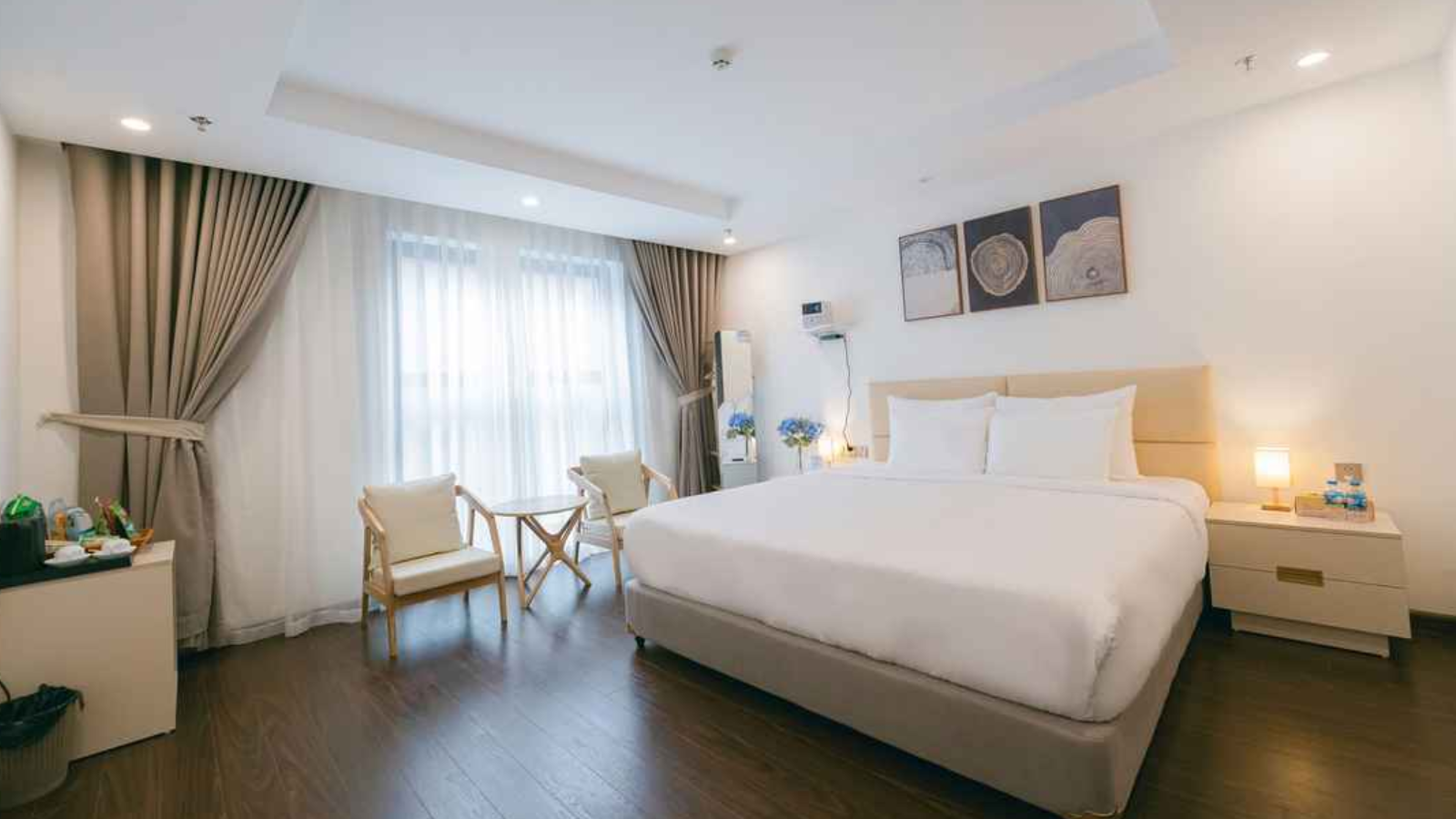 Khách sạn sở hữu khoảng 40 phòng thiết kế hiện đại, giường êm ái chuẩn 5 sao, trang bị điều hòa, minibar, TV thông minh, Wi-Fi miễn phí. Nhiều phòng có view Hồ Tây hoặc ban công thoáng mát, tạo cảm giác thư giãn trọn vẹn.