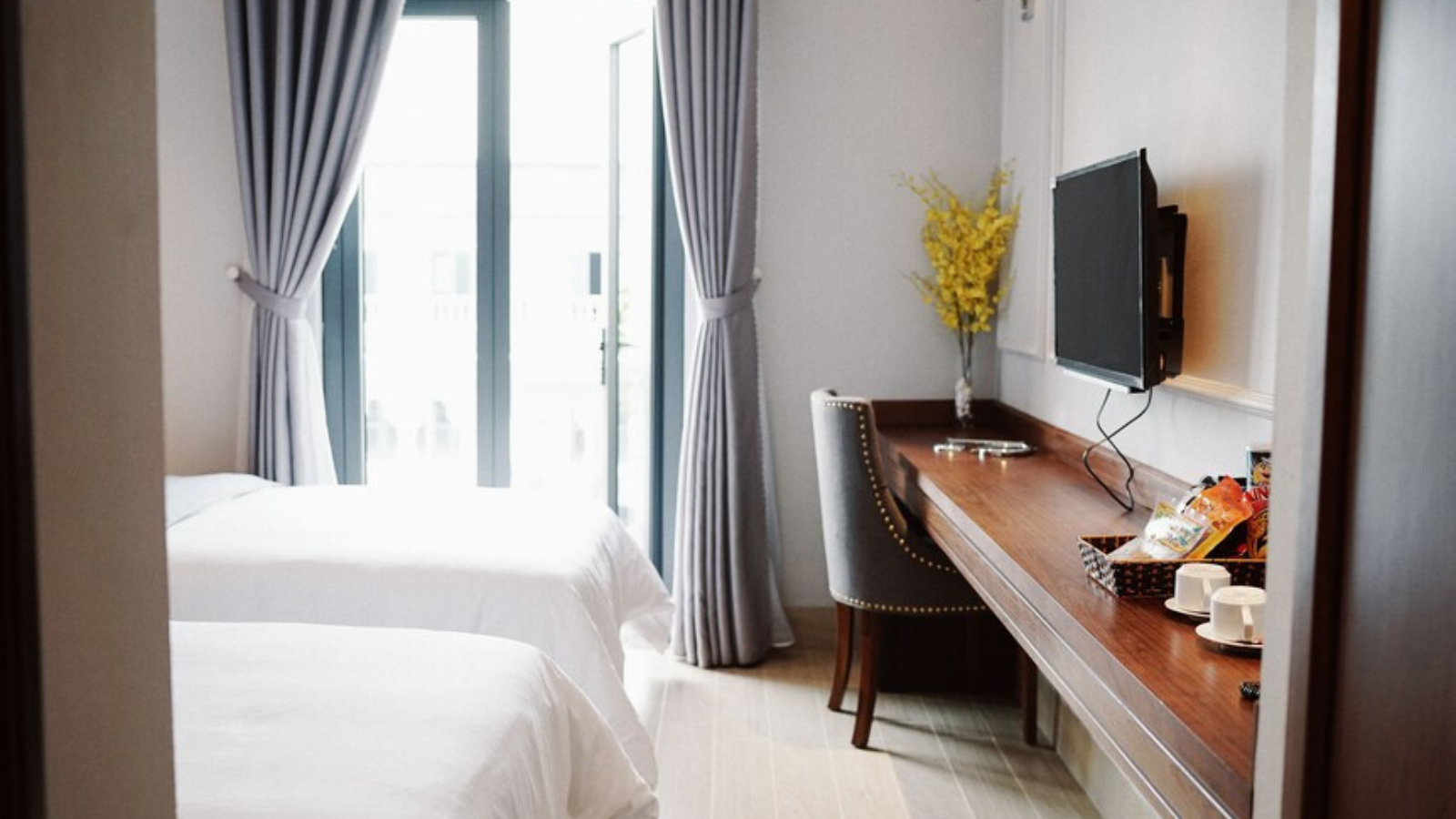 - Trang bị cơ bản gồm: giường ngủ, điều hòa, TV, minibar, bàn làm việc, phòng tắm riêng.