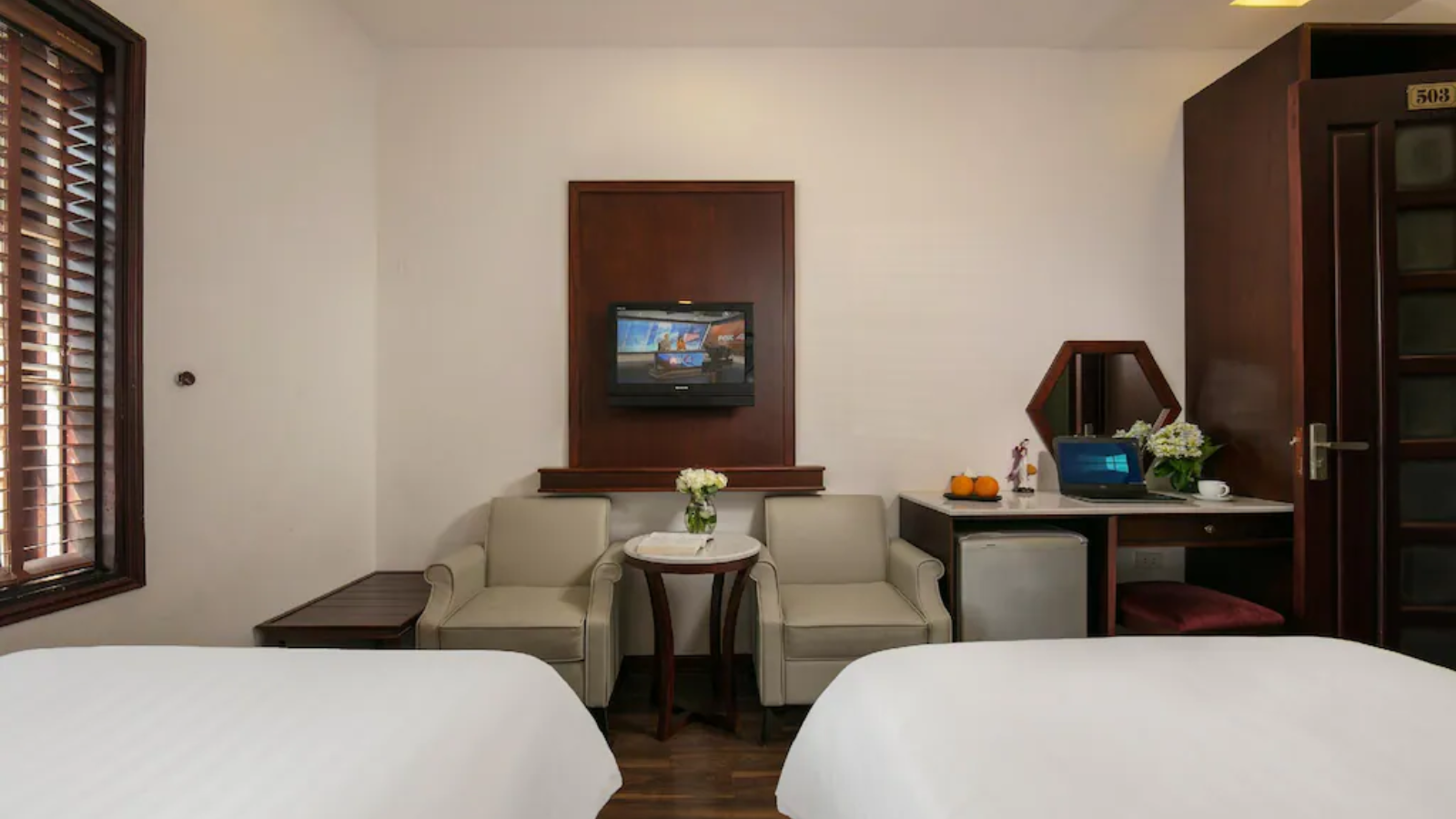 Khách sạn sở hữu 28 phòng nghỉ được thiết kế trang nhã, đầy đủ tiện nghi như tivi màn hình phẳng, minibar, két an toàn, điều hòa và wifi tốc độ cao. Một số phòng có ban công nhìn ra phố cổ nhộn nhịp, lý tưởng cho những ai yêu thích không khí Hà Nội xưa.