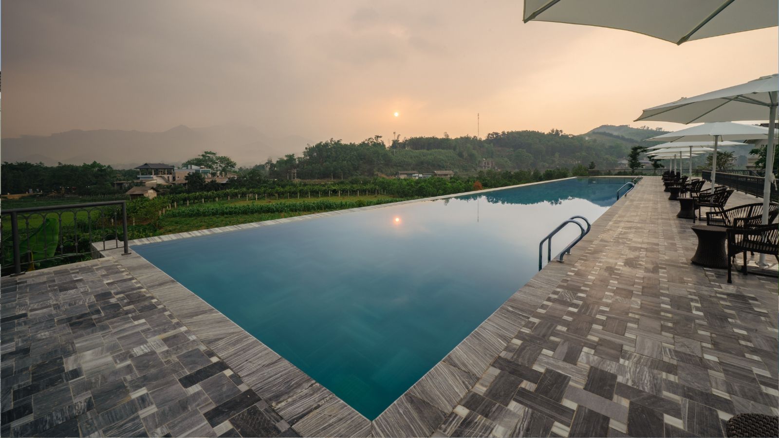 - Bể bơi khoáng nóng trung tâm và bể bơi khoáng nóng vô cực