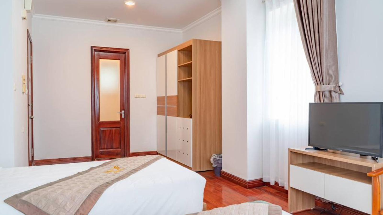 Trang bị tiện nghi đầy đủ: điều hòa, tủ lạnh nhỏ, phòng tắm riêng, wifi miễn phí.