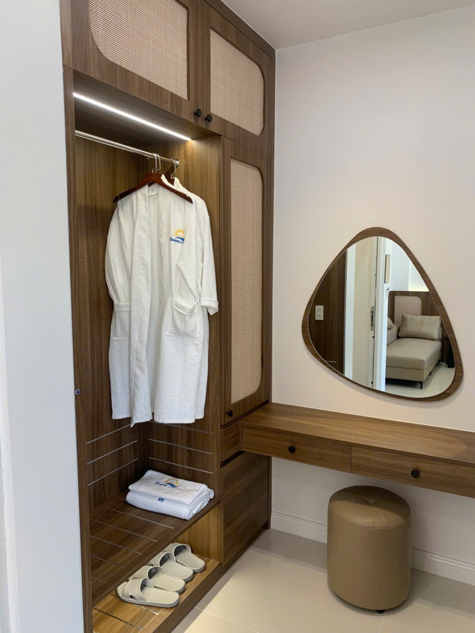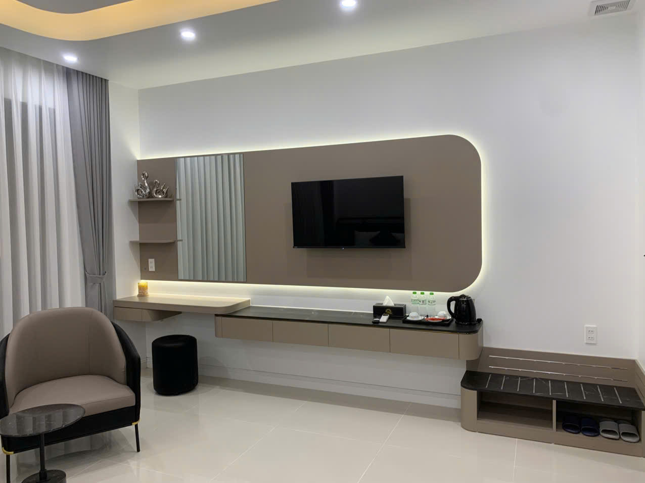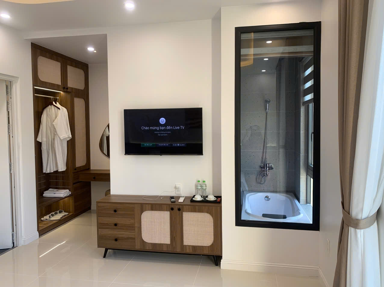 Một số phòng có ban công, tủ quần áo, bàn làm việc, TV màn hình phẳng.