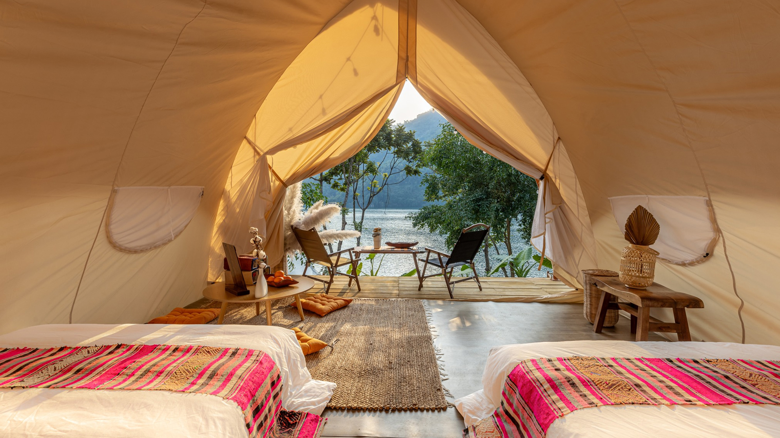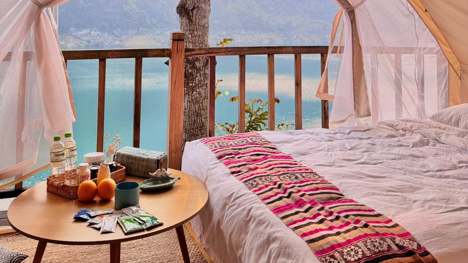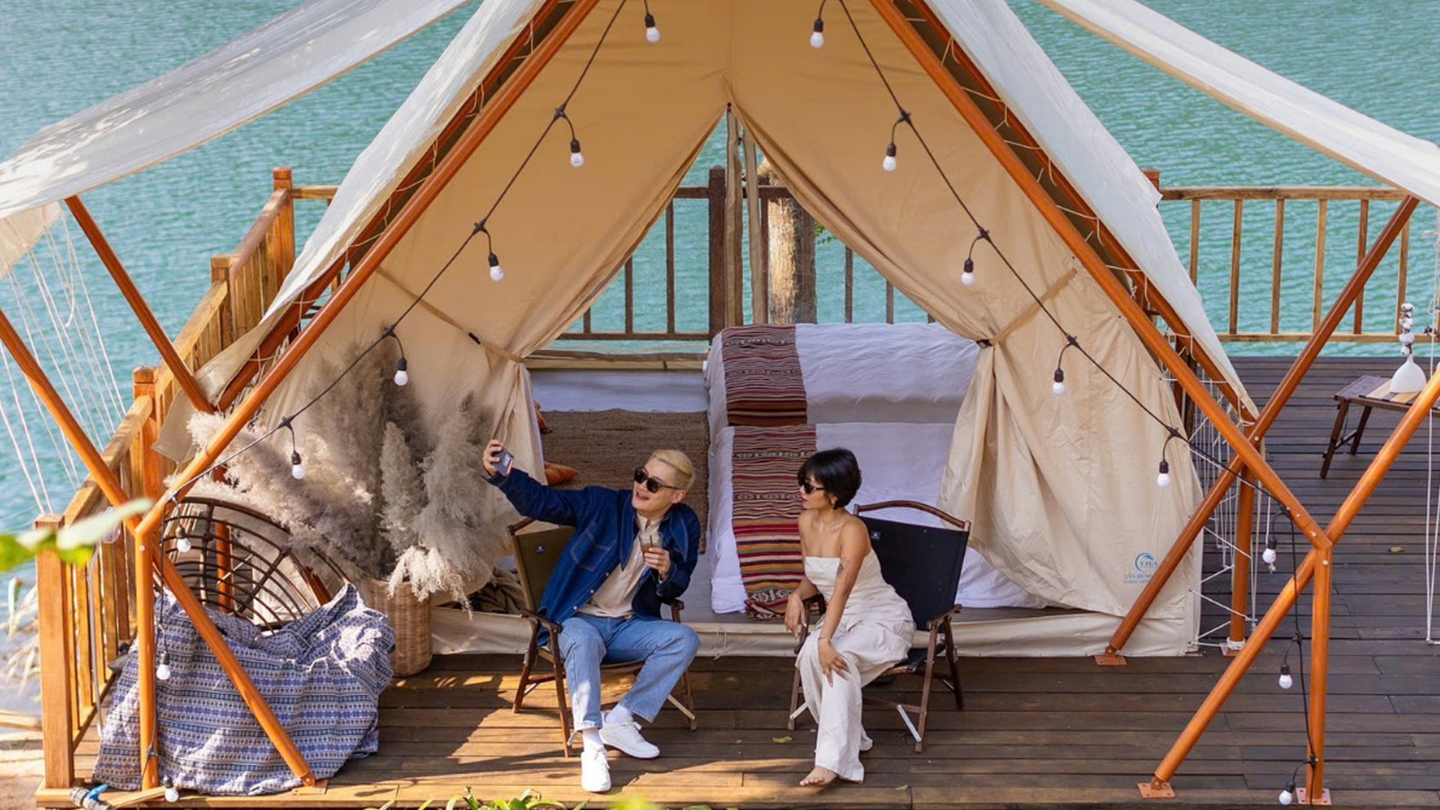 Tắm bồn thư giãn từ những căn lều xinh xắn, view núi hồ lãng mạn