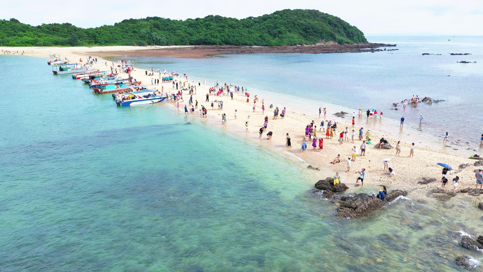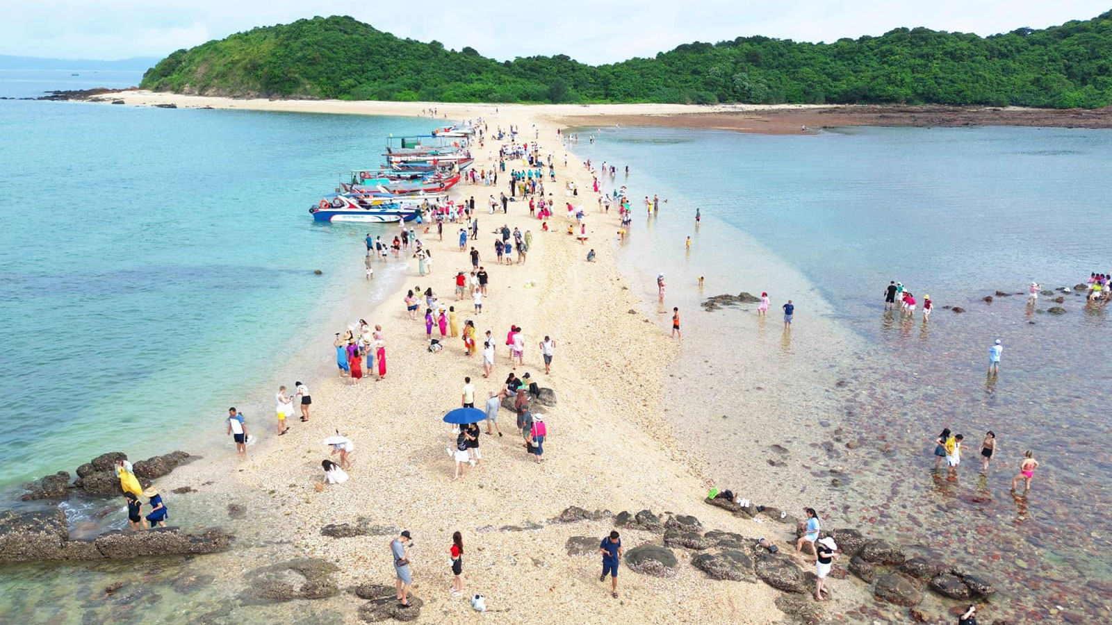 - 8h15 – 9h00: Đoàn di chuyển bằng Cano khám phá Đảo Cá chép con. Tại đây quý khách sẽ được tham quan một hòn đảo nhỏ với bờ cát trắng trải dài chỉ hiện lên trong một thời gian nhất định trong ngày cùng với làn nước biển trong vắt. Quý khách có thể thoải mái chụp ảnh, check in hòn đá thủng. lưu ý: tại đây không được tắm biển